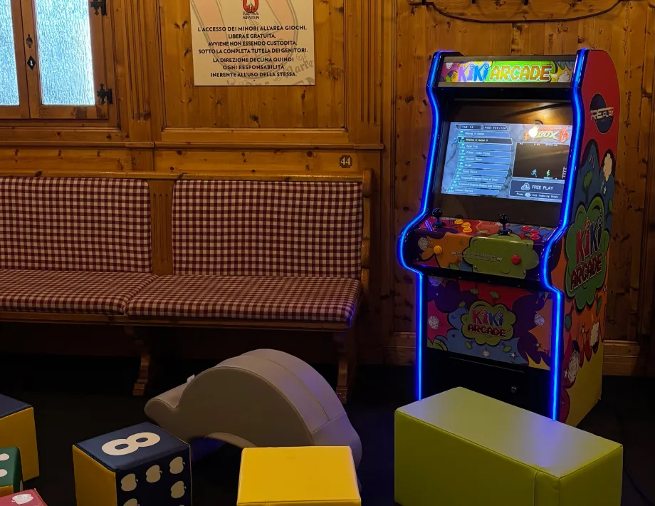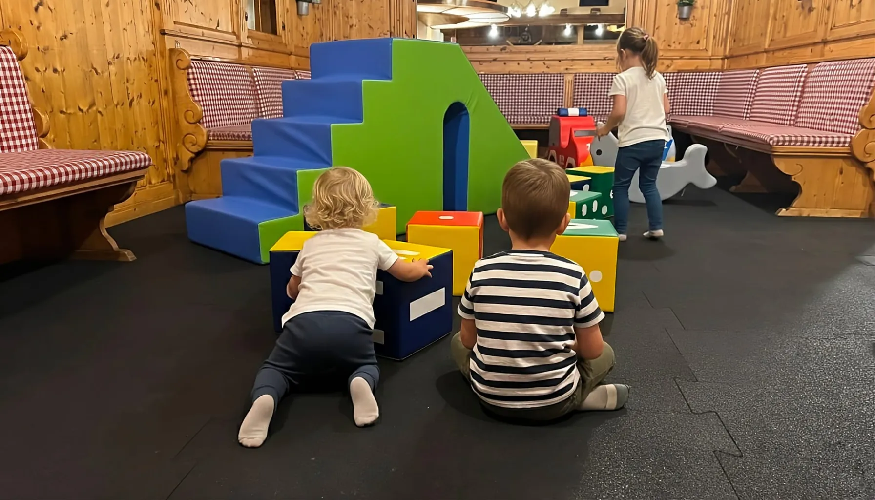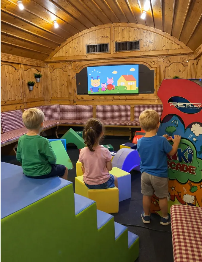 Famiglie benvenute! Abbiamo creato per voi una grande area giochi per bambini, sicura e divertente, così mentre i più piccoli si divertono, voi potete godervi la cena in totale relax!